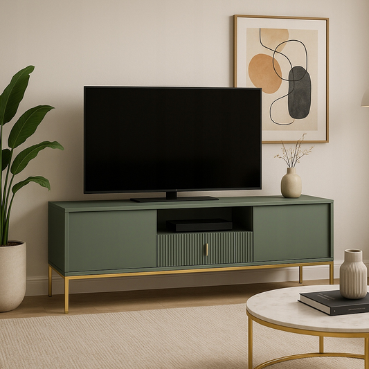 Loftový zelený TV stolík Marcos