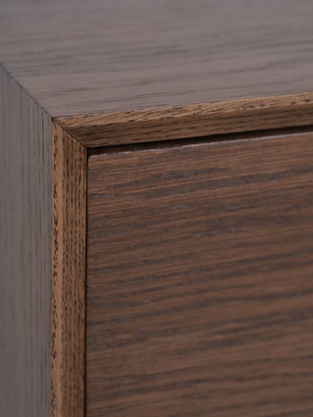 Nočný stolík HOKKSUND v tmavom dube je sofistikovaná voľba pre vašu spálňu.
