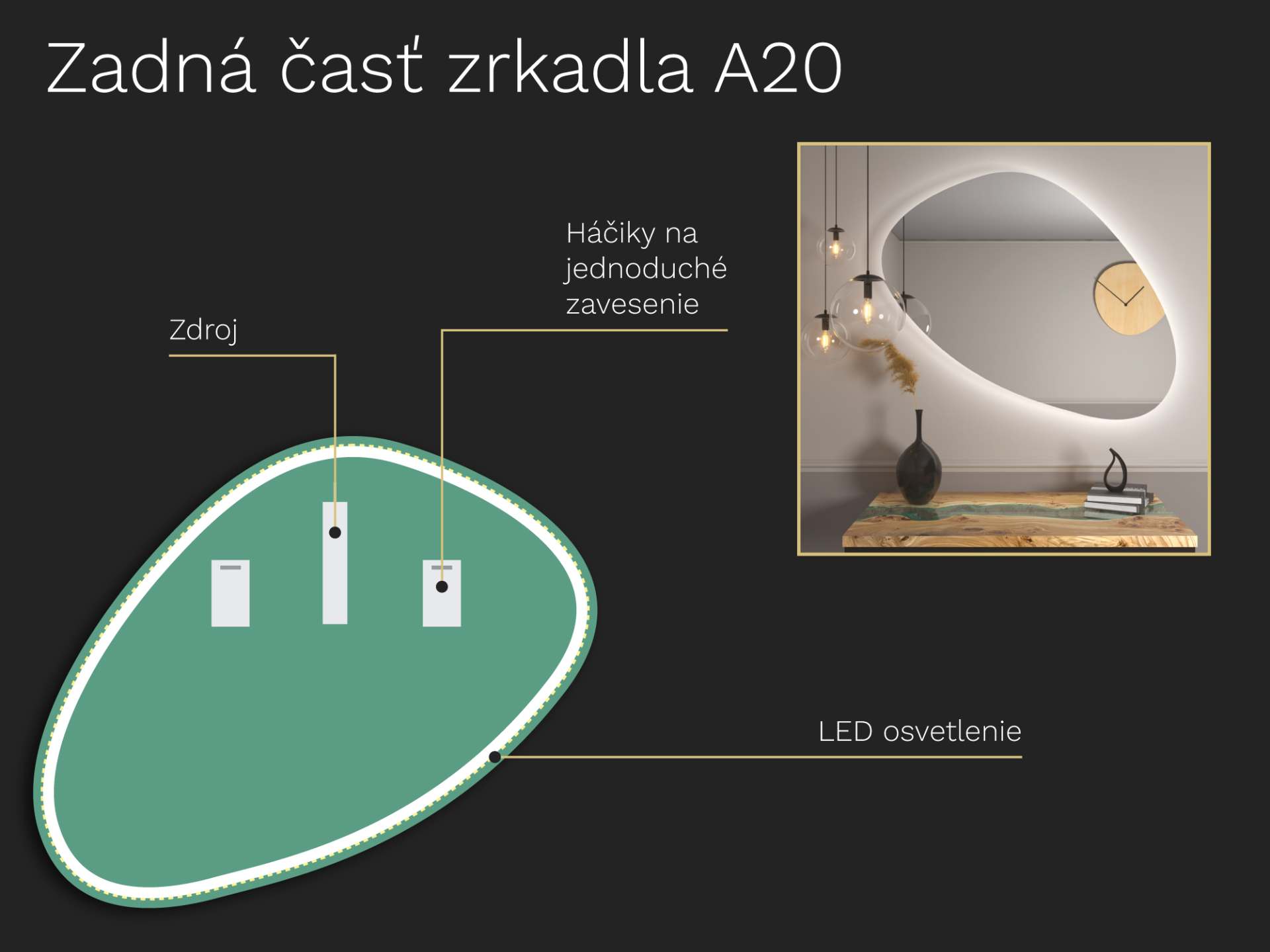 Organické LED zrkadlo s osvetlením A20