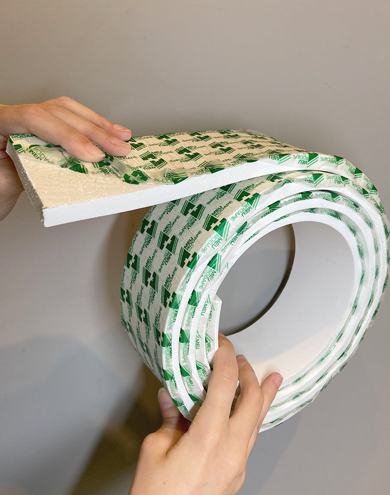 Samolepiaca vrstva umožňuje jednoduchú a čistú montáž bez ďalšieho lepidla a podstavec sa ľahko reže a prispôsobí rôznym povrchom.